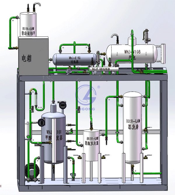 整套裝置由鋼制安裝框架、甲醇計量槽、甲醇汽化器、氣體混合器、氧化器、仿真儀表、就地計算機操作臺、、就地智能儀表控制上位監(jiān)控軟件、外置配套設(shè)備等組成,工藝路線簡潔清晰,現(xiàn)場儀表與通訊模塊有機結(jié)合,上位計算機控制,設(shè)置DCS界面及自動評分系統(tǒng)。