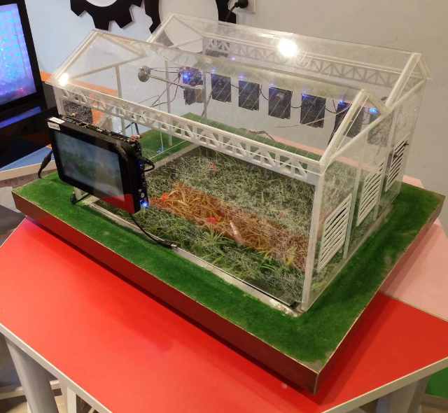 LGWL-NY05型 智慧農(nóng)業(yè)沙盤實(shí)訓(xùn)系統(tǒng)(參考尺寸(可定制):120cm×80cm×80cm),通過采集大棚內(nèi)空氣溫濕度、光照度、土壤濕度、二氧化碳濃度等數(shù)據(jù)信息,經(jīng)過WiFi組網(wǎng)到網(wǎng)關(guān)、網(wǎng)關(guān)通過以太網(wǎng)或4G網(wǎng)絡(luò)傳送給云服務(wù)平臺(tái),經(jīng)過分析處理,通過WEB頁面展示農(nóng)業(yè)生產(chǎn)環(huán)境的數(shù)據(jù)信息,控制加濕器、通風(fēng)扇、補(bǔ)光燈、遮陽簾、點(diǎn)陣屏等執(zhí)行器的工作狀態(tài)。同時(shí),系統(tǒng)支持視頻采集,用戶可通過物聯(lián)網(wǎng)網(wǎng)關(guān)、WEB監(jiān)控平臺(tái)、移動(dòng)端近場(chǎng)或遠(yuǎn)程視頻瀏覽大棚的實(shí)時(shí)狀況。系統(tǒng)支持用戶自定義控制決策,實(shí)現(xiàn)農(nóng)業(yè)生產(chǎn)環(huán)境的自動(dòng)調(diào)節(jié),達(dá)到促進(jìn)作物生長(zhǎng)的目的。