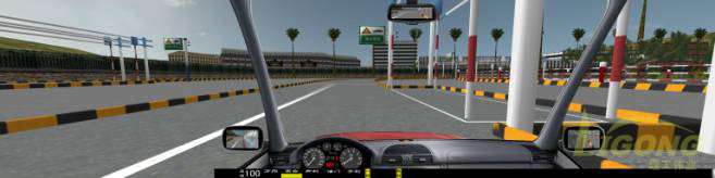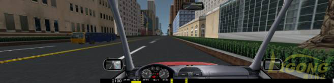 啟動畫面后,界面下方同時顯示:油門、剎車、轉向、離合器深淺進度均有顯示。視景120度全新廣角寬頻駕駛模擬,界面顯示各項指示燈、文字提示框、檔位位置、訓練成績,后視鏡(左、右、中)后視鏡可調節(jié)、訓練線路圖均有顯示。