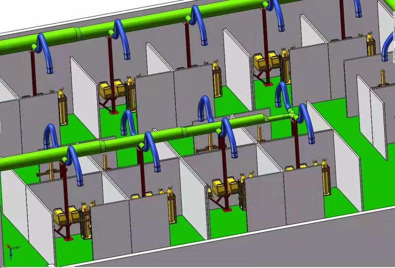 3、3米阿爾法柔吸臂,合理分配,布局美觀分組安裝處理焊接煙塵,每個柔吸臂口都有開關(guān),當(dāng)使用時可以打開,不使用時可以關(guān)閉。螺旋風(fēng)管組合合理,風(fēng)量壓力計算準(zhǔn)確。每臺風(fēng)機(jī)變頻控制,風(fēng)機(jī)安裝在實(shí)訓(xùn)室屋頂,并做遮風(fēng)擋雨消音防曬風(fēng)機(jī)房,噪音不得高于76分貝;