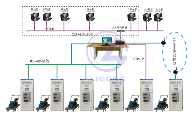 (7)采用C/S網(wǎng)絡(luò)結(jié)構(gòu)配置主站和客戶機(jī),主站對客戶機(jī)進(jìn)行故障設(shè)置,實(shí)時監(jiān)控管理與考核等功能;