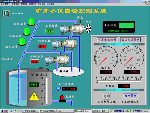 3. 具有完善的報警系統(tǒng),能逼真的模擬工業(yè)現(xiàn)場的各種情況,如礦井液位、泵轉(zhuǎn)速及電機(jī)溫度的檢測信號故障報警,低水位、高水位以及超高水位的聲光同步報警、優(yōu)先級報警,報警復(fù)位和報警禁止復(fù)位等功能