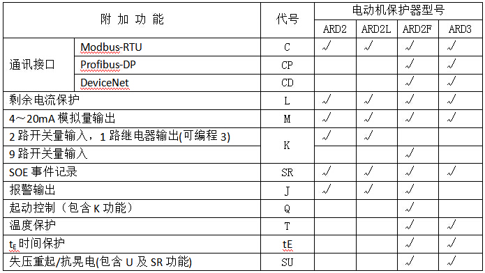 注:1、“√”表示可以選擇的附加功能。