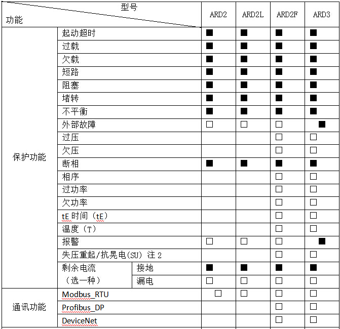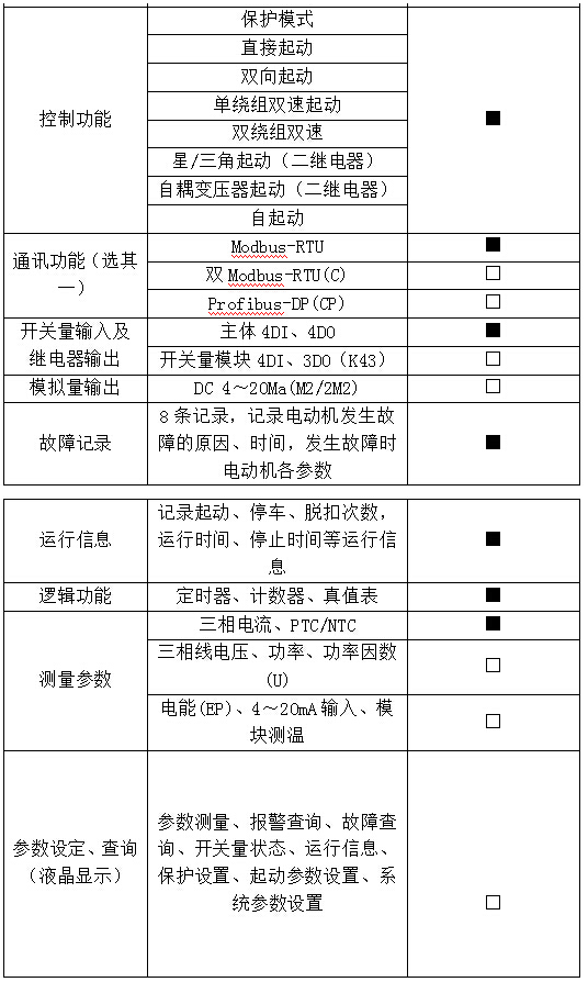 1、“■”為標配功能,“□”為選配功能。