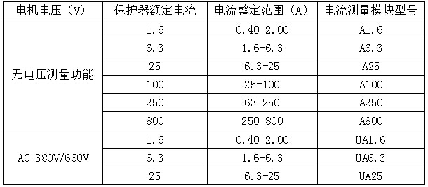 注:>250kW的低壓電動機,額定電流小于800A時均可選用800A等級的電動機保護器。