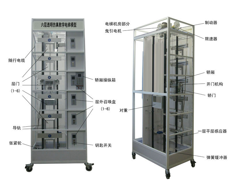 透明電梯實(shí)訓(xùn)裝置(六層、仿真實(shí)物)是為了配合各大院校、職業(yè)技術(shù)學(xué)院、技師學(xué)院、技校、勞動(dòng)就業(yè)培訓(xùn)中心、質(zhì)量技術(shù)監(jiān)督局特檢中心、電梯維修物業(yè)管理部門等有關(guān)電梯專業(yè)和工業(yè)自動(dòng)化專業(yè)課程實(shí)驗(yàn)演示,使更多的人能夠更好地了解電梯、使用電梯,培養(yǎng)出更多的電梯專業(yè)人才,適應(yīng)電梯行業(yè)的發(fā)展需要,我公司經(jīng)過深入探索研究,精心設(shè)計(jì)的。