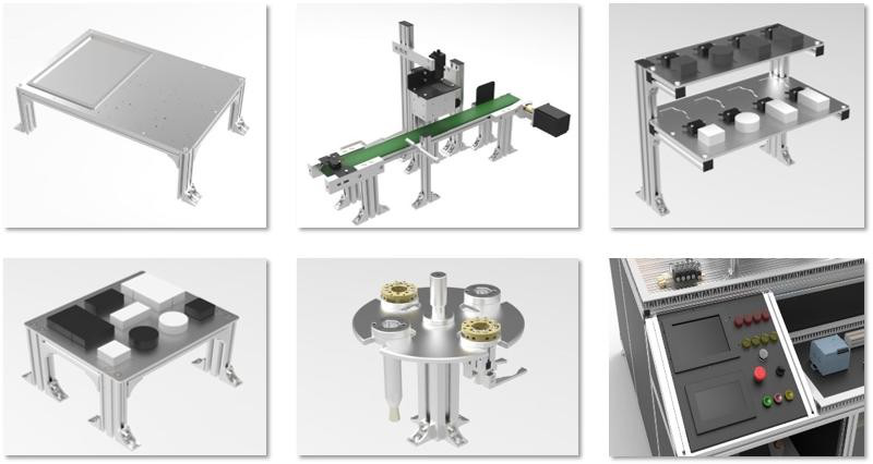 另外,模塊化機(jī)械設(shè)計(jì)是工業(yè)發(fā)達(dá)國(guó)家近二十年來(lái)一直采用的一種先進(jìn)的機(jī)械產(chǎn)品設(shè)計(jì)方法。學(xué)生自主設(shè)計(jì)臺(tái)面功能模塊可作為《機(jī)械設(shè)計(jì)》課程的綜合實(shí)驗(yàn)部分。學(xué)生根據(jù)課上所學(xué)機(jī)械原理和機(jī)械設(shè)計(jì)的基礎(chǔ)知識(shí),在三維設(shè)計(jì)軟件中實(shí)現(xiàn)自己的設(shè)計(jì)想法,可自行設(shè)計(jì)機(jī)器人末端工具,臺(tái)面工裝、生產(chǎn)流水線及視覺(jué)分揀等。學(xué)生也可組隊(duì)完成整個(gè)臺(tái)面的重新規(guī)劃,利用設(shè)備本體提供的氣路和電路總線,賦予臺(tái)面新的設(shè)計(jì)亮點(diǎn)。此部分也可作為機(jī)械設(shè)計(jì)、機(jī)械制造、機(jī)電一體化、工業(yè)設(shè)計(jì)等專業(yè)的畢業(yè)設(shè)計(jì)內(nèi)容。此工作站整體外形統(tǒng)一,具有外部通訊接口,所以有配置靈活、便于擴(kuò)展的優(yōu)點(diǎn)。各工作站既可以作為獨(dú)立的功能個(gè)體,完成機(jī)器人的實(shí)訓(xùn)任務(wù)。也可以作為相互的擴(kuò)展模塊,通過(guò)電纜緊密拼裝后組成一個(gè)整體的結(jié)構(gòu)。某一個(gè)工作站作為主控,其他工作站協(xié)同。通過(guò)之前所述不同的設(shè)計(jì)賦予每個(gè)工作站不同的功能, 可添加節(jié)拍控制、生產(chǎn)管理、工業(yè)系統(tǒng)工程等管理思路,使其整體實(shí)現(xiàn)更加多元化的功能。