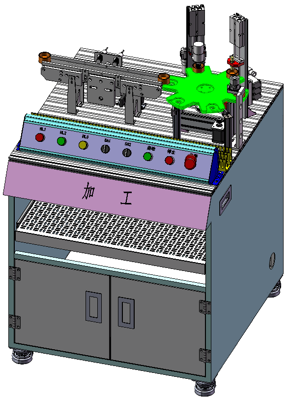 加工單元由傳輸線、加工站、轉(zhuǎn)盤機構(gòu)等組成。完成物料加工、檢測及輸送等功能。