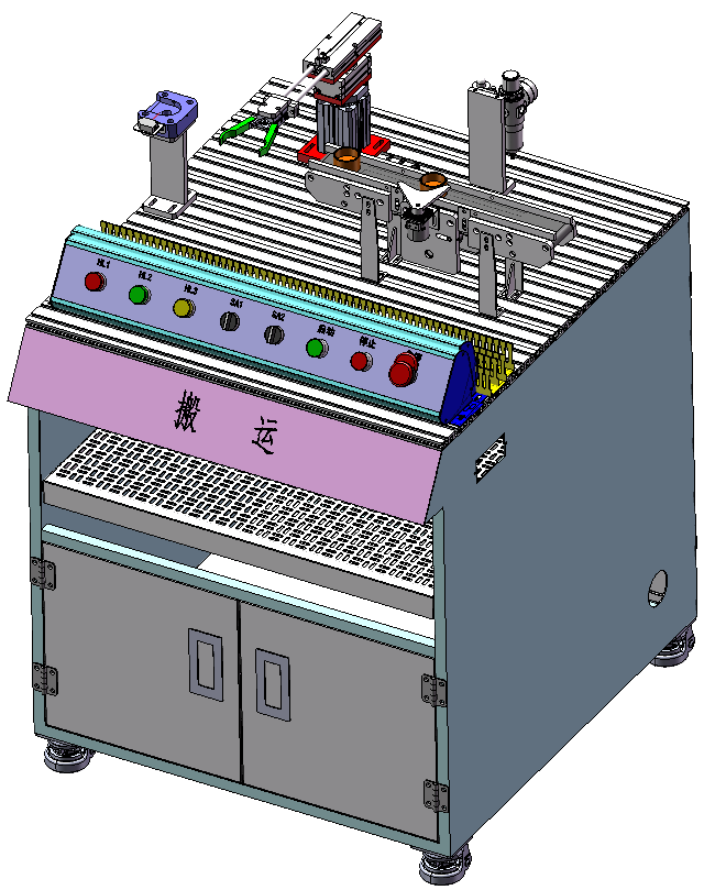 搬運站是接駁上一站的物料放置傳輸線進行下一站的供料,由物料平臺、氣缸機械手、傳輸線等機構(gòu)組成。氣缸規(guī)格量程:旋轉(zhuǎn)氣缸:0~180°,雙聯(lián)氣缸:行程:100mm,平行氣夾:缸徑:16mm,不回轉(zhuǎn)氣缸:行程:100mm,檢測傳感器:磁感式。