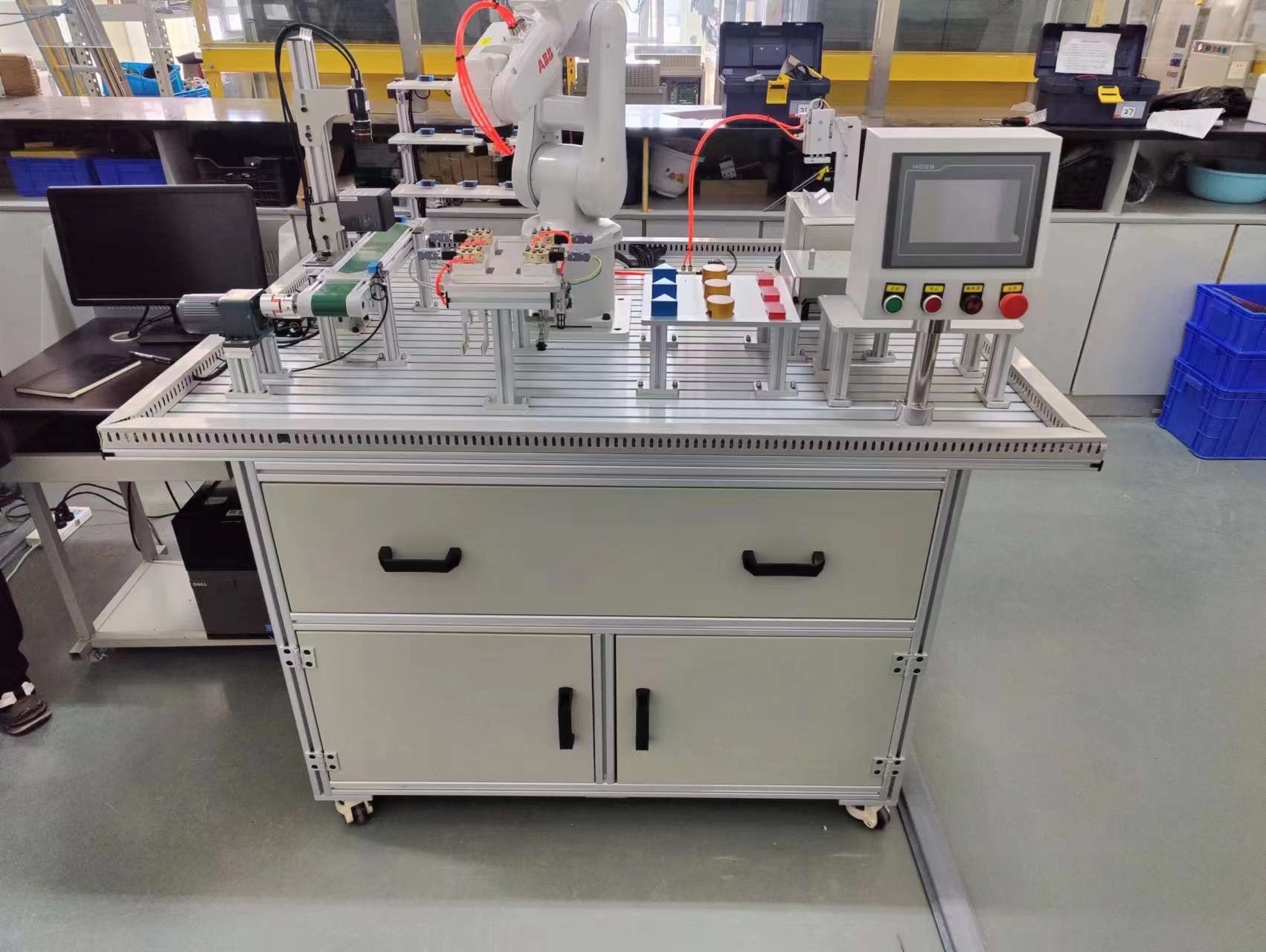 2.設(shè)備涵蓋機(jī)電一體化或電氣自動(dòng)化專業(yè)學(xué)習(xí)中所涉及的如工業(yè)機(jī)器人應(yīng)用與維護(hù)、機(jī)電控制技術(shù)、氣動(dòng)控制技術(shù)、過程控制技術(shù)、可編程控制技術(shù)、自動(dòng)檢測(cè)技術(shù)、變頻調(diào)速技術(shù)、運(yùn)動(dòng)控制技術(shù)、網(wǎng)絡(luò)通信技術(shù)、人機(jī)界面、單片機(jī)控制技術(shù)、上位機(jī)監(jiān)控技術(shù)。