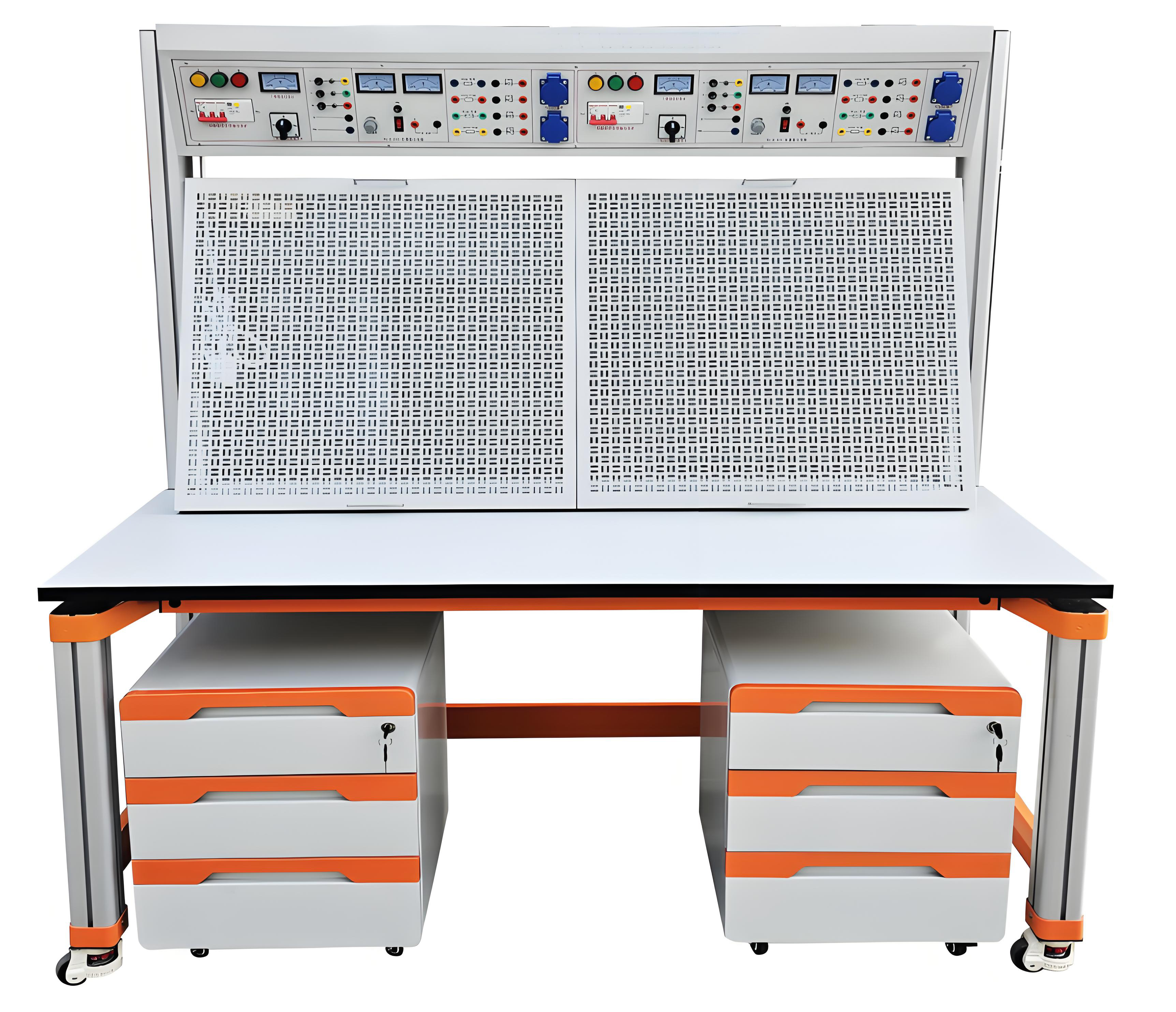 四、實訓設備操作桌:鐵質雙層亞光密紋噴塑,桌面為防火、防水、耐磨高密度板,設有抽屜和元件儲存柜,結構堅固、造型美觀大方。
