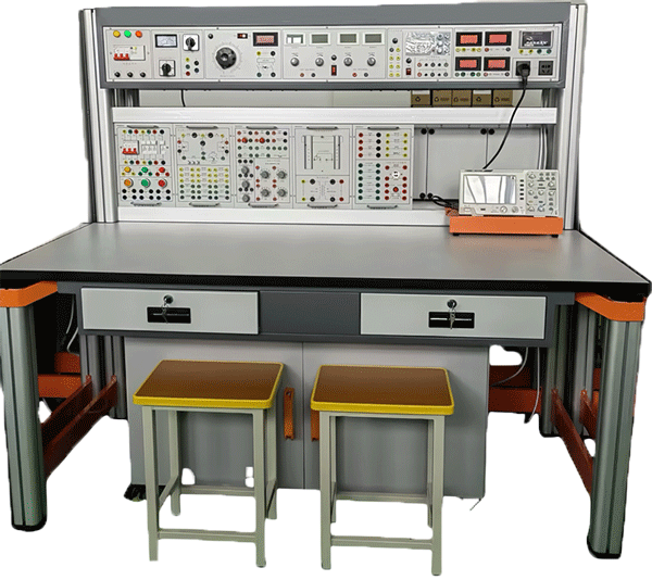 裝置由主機(jī)箱、實(shí)驗(yàn)桌、實(shí)訓(xùn)掛箱、獨(dú)立封裝實(shí)訓(xùn)電路模塊、移動矮柜、示波器架、學(xué)生凳等組成。實(shí)訓(xùn)裝置支架與實(shí)訓(xùn)桌可組合、可拆裝。支架與桌腳一體,鋁合金結(jié)構(gòu),實(shí)訓(xùn)掛箱、各實(shí)驗(yàn)?zāi)K可根據(jù)實(shí)驗(yàn)需求自由組合放置。
