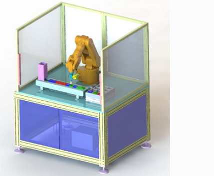 由工件存儲(chǔ)盒托盤及型材立柱組成,安裝在型材實(shí)訓(xùn)桌上,機(jī)器人用于放置裝配完的組件進(jìn)行堆垛,也可以通過機(jī)器人對(duì)裝配完成的組件進(jìn)行拆垛。