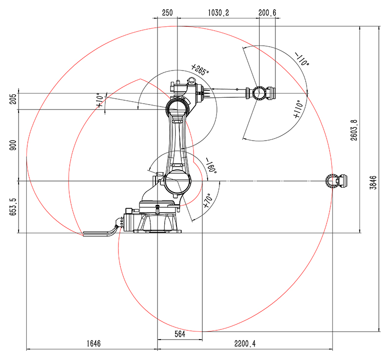3、工作范圍寬廣靈活,各軸運(yùn)動(dòng)范圍大,臂展2200mm,可以覆蓋眾多工作場景,手腕結(jié)構(gòu)緊湊,可以在狹窄空間內(nèi)靈活轉(zhuǎn)動(dòng)。