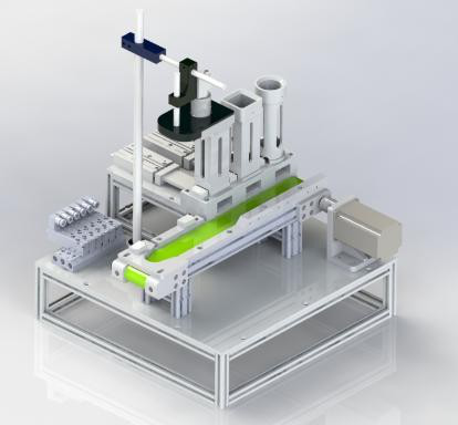 2、自動(dòng)上料模塊:該模塊由料倉、氣缸、傳送帶、視覺、定位臺組成。自動(dòng)上料機(jī)可以上三種形狀(圓形、方形、矩形)的物料,每種物料又分兩種顏色(藍(lán)色、紅色),選手通過視覺系統(tǒng)識別物料形狀與顏色來分類物料。