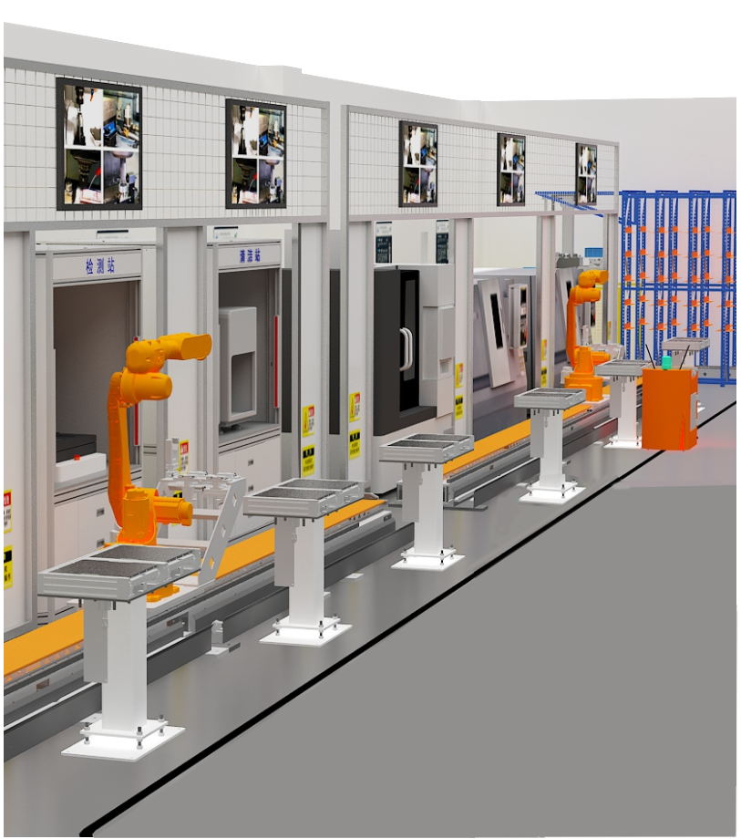 數(shù)字化協(xié)同制造與設(shè)計中心、數(shù)控機(jī)床加工制造單元及其自動化改造、自動化清洗單元、,自動化檢測單元、自動化裝配單元、自動化立體倉儲單元、多軸移動工業(yè)機(jī)器人上下料單元、AGV運(yùn)載單元、監(jiān)控單元、系統(tǒng)中央控制單元