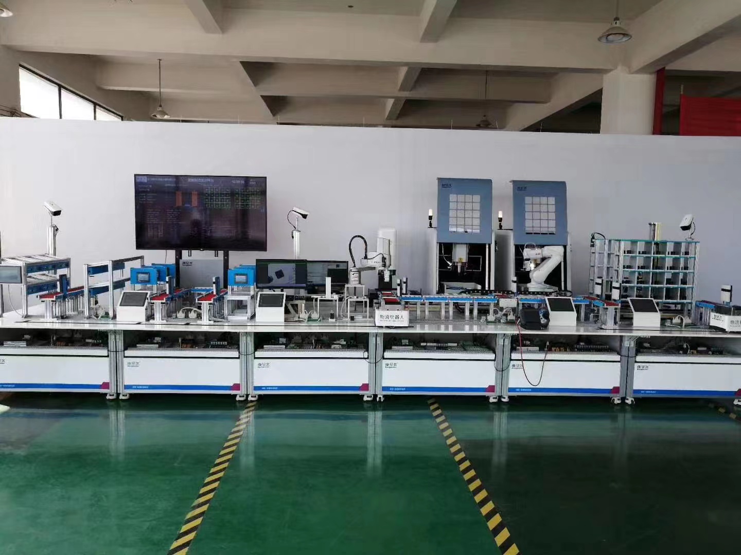 主要由總控臺、編程電腦、可視化及顯示終端、監(jiān)控系統(tǒng)等組成,用于整個(gè)智能產(chǎn)線的控制和功能、實(shí)訓(xùn)場景展示。