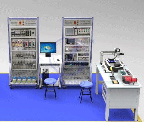 設(shè)備采用模塊化設(shè)計組合式運用的設(shè)計理念,由PLC電氣控制應(yīng)用平臺、電力拖動安裝平臺、立式塑膠機控制電路故障診斷實訓(xùn)平臺等組成。該套設(shè)備包含了 PLC 控制技術(shù)、觸摸屏應(yīng)用技術(shù)、變頻調(diào)速技術(shù)、伺服驅(qū)動技術(shù)、步進驅(qū)動技術(shù)、工業(yè)傳感器技術(shù)、電動拖動技術(shù)、直流調(diào)速技術(shù)等培訓(xùn)及鑒定內(nèi)容。設(shè)備集成智能物聯(lián)網(wǎng)模塊,實現(xiàn)與各種儀表的數(shù)據(jù)采集、處理,經(jīng)過數(shù)據(jù)處理后上傳到服務(wù)器平臺,同時服務(wù)器平臺可以對物聯(lián)網(wǎng)模塊下達指令,配合擴展板模塊實現(xiàn)遠程控制。該套設(shè)備還配備了數(shù)字孿生仿真系統(tǒng),通過 3D 仿真模型和仿真數(shù)據(jù)驅(qū)動器取代實體設(shè)備, 設(shè)備受 PLC 程序控制并反饋相關(guān)的傳感器信號,在虛擬空間中完成映射,從而反映相對應(yīng)的實體設(shè)備的運動過程。