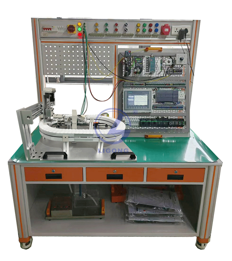 LG-JD02A型 機(jī)電一體化實(shí)訓(xùn)工作站采用“模塊化”的設(shè)計(jì)理念,標(biāo)準(zhǔn)化電路接口、氣路接口和機(jī)械接口??傮w由工作臺(tái)、電氣控制掛板、環(huán)形輸送分揀應(yīng)用模塊等構(gòu)成。 工作站包含實(shí)訓(xùn)平臺(tái)、控制掛板、應(yīng)用模塊、電腦桌組成,實(shí)訓(xùn)平臺(tái)采用優(yōu)質(zhì)鋁型材做骨架,鋁型材立柱與實(shí)訓(xùn)桌面連接。左右兩側(cè)及后面封裝優(yōu)質(zhì)鋼板,正面設(shè)計(jì)儲(chǔ)物柜與抽屜。