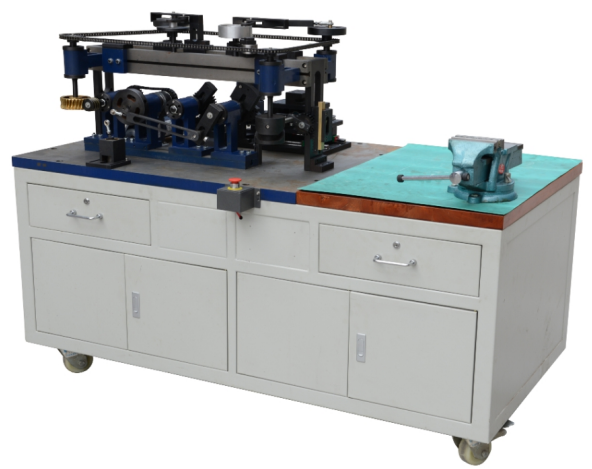 本裝置是結(jié)合各職業(yè)學(xué)校、技工院校“機(jī)械制造技術(shù)”、“機(jī)電設(shè)備安裝與維修”、“機(jī)械裝配”“機(jī)械設(shè)備裝配與自動(dòng)控制”等專(zhuān)業(yè)而研制的,學(xué)生通過(guò)裝配和調(diào)整動(dòng)力傳動(dòng)機(jī)構(gòu)、擠壓破碎機(jī)、沖床機(jī)構(gòu)、提升搬運(yùn)機(jī)、鏈條運(yùn)輸機(jī)等機(jī)構(gòu),強(qiáng)化了學(xué)生對(duì)各類(lèi)傳動(dòng)機(jī)構(gòu)故障診斷和維修等綜合能力,培養(yǎng)了識(shí)讀與繪制裝配圖和零件圖、鉗工基本操作、零部件和機(jī)構(gòu)裝配工藝與調(diào)整、裝配質(zhì)量檢驗(yàn)等技能,使學(xué)生能夠達(dá)到“學(xué)以致用”并且在實(shí)踐中學(xué)到新的知識(shí)。