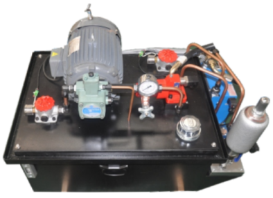 液壓泵站由三相電機、變量葉片泵、單向閥、風(fēng)冷器、空氣濾清器、油溫油面計、精密過濾器、壓力表、蓄能器、泄壓閥組等組成。
