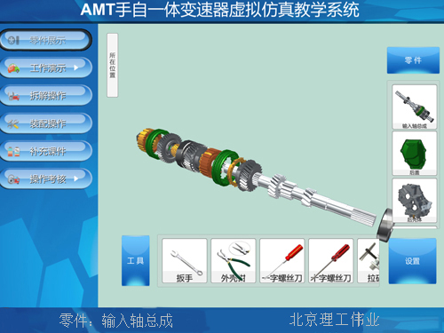 AMT手自一體變速箱虛擬仿真教學軟件是以AMT手自一提變速箱的實物為基礎,結合它的結構、工作原理等進行研發(fā)的汽車教學軟件,用于汽車AMT手自一提變速箱的教學與培訓,讓學生更加深入了解AMT手自一提變速箱的工作與結構等,為社會提供精英人才。
