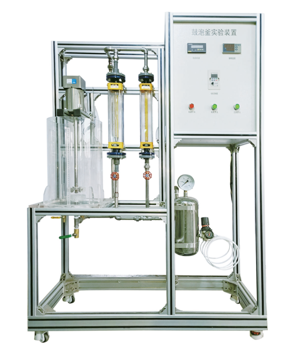 鼓泡釜、空壓機(jī)、流量計(jì)、攪拌器、氣體分布器、調(diào)速電機(jī)、變頻器、空氣緩沖罐、氣體調(diào)壓閥、數(shù)字顯示儀表、高品質(zhì)鋁合金型材框架。