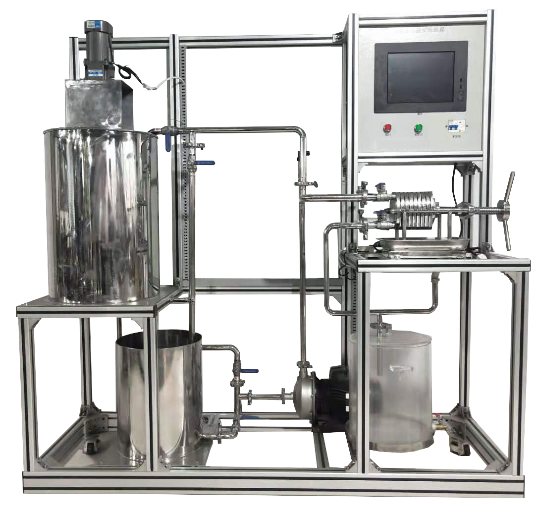 4、該實驗裝置是由過濾板、過濾框組成的小型工業(yè)用不銹鋼板框過濾機,能完整地體現(xiàn)了板框壓濾機的構造和操作流程,采用氣動配料、氣動攪拌加壓技術,用空氣將物料注入過濾機,工程化概念強。