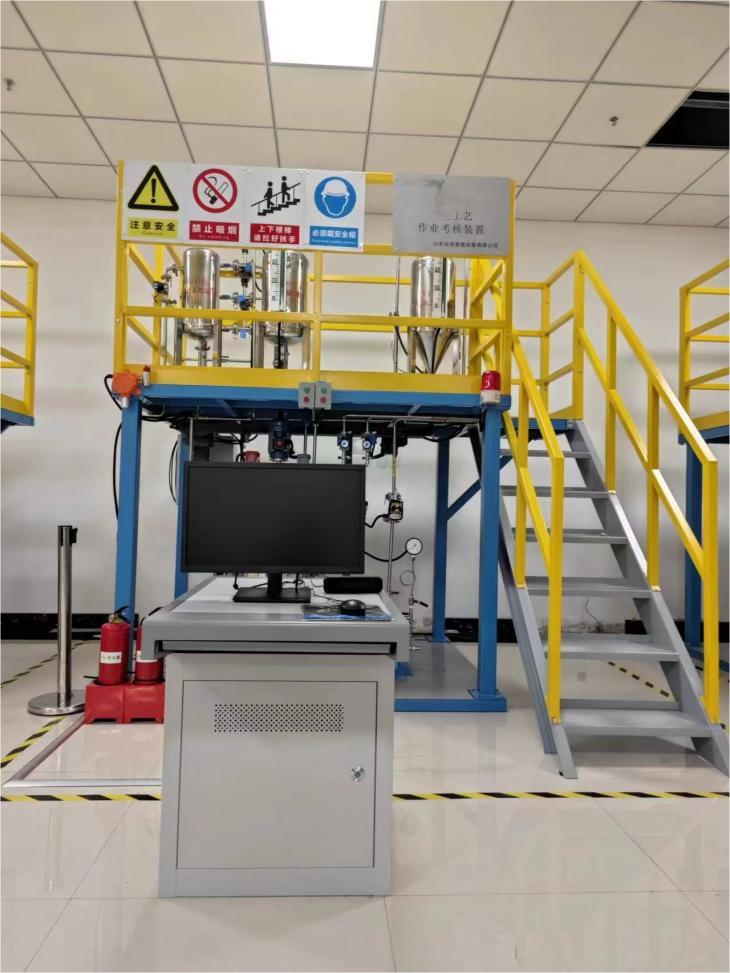 一、裝置特色 整套裝置由鋼制安裝框架、苯計量槽、硝化釜、冷凝器、仿真儀表、就地計算機操作臺、、就地智能儀表控制上位監(jiān)控軟件、外置配套設備等組成,工藝路...