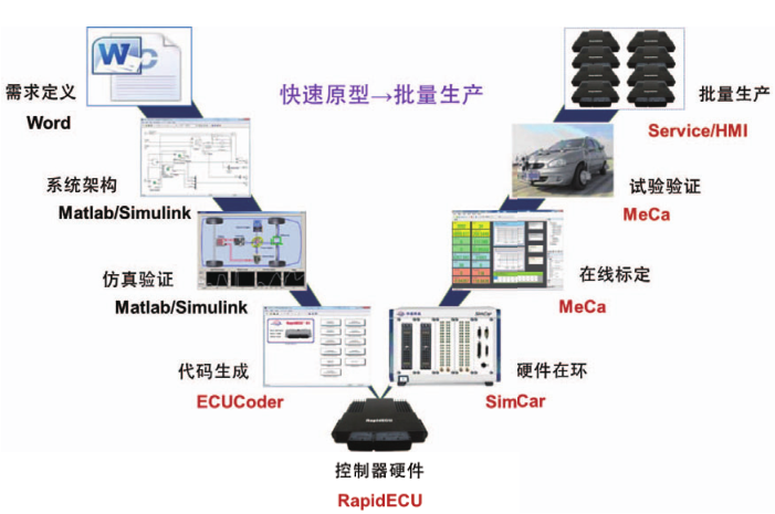 隨著人們對(duì)車輛舒適、安全、節(jié)能、環(huán)保等要求的日益提高,汽車智能化和電子化成為未來(lái)車輛技術(shù)的主要趨勢(shì),由此對(duì)電子控制技術(shù)及開發(fā)者提出了更大的挑戰(zhàn)。對(duì)于國(guó)內(nèi)電控開發(fā)者而言,在 ECU 開發(fā)和產(chǎn)品化方面存在更大的困難,需要應(yīng)對(duì)更多的挑戰(zhàn)。ECU 主要包括控制器硬件和控制器軟件,其中的控制器軟件又包括基礎(chǔ)軟件與應(yīng)用軟件,應(yīng)用軟件決定了車輛駕駛體驗(yàn),是車輛及零部件子系統(tǒng)品牌差異化的主要體現(xiàn),是各大廠商自主研發(fā)的核心知識(shí)產(chǎn)權(quán),控制器硬件以及基礎(chǔ)軟件,是保證應(yīng)用軟件良好運(yùn)行的平臺(tái)。在開發(fā)階段和產(chǎn)品化階段,傳統(tǒng)開發(fā)方式一般采用不同的平臺(tái),這些平臺(tái)間的移植和驗(yàn)證都存在較大的難度,需要花費(fèi)大量的時(shí)間、精力以及昂貴的費(fèi)用。對(duì)于剛剛起步的自主品牌在產(chǎn)量和成本的要求下,對(duì)于相對(duì)復(fù)雜的控制系統(tǒng),新產(chǎn)品的產(chǎn)品化幾乎成了難以完成的任務(wù)。