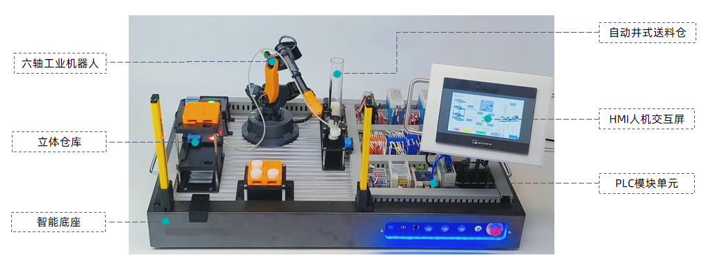 實(shí)訓(xùn)臺(tái)包含智能傳感器技術(shù)、工業(yè)機(jī)器人編程、PLC編程三大板塊課程內(nèi)容,以項(xiàng)目為主導(dǎo),將知識(shí)融入項(xiàng)目,鏈接理論與實(shí)踐。