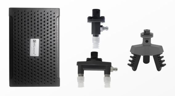 機(jī)器人開發(fā)氣動套件包含氣動吸盤、柔爪、氣源。安裝于機(jī)械臂末端,實現(xiàn)物品抓取與釋放