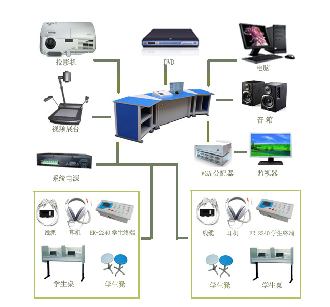 LG-2240型 語言學(xué)習(xí)系統(tǒng)采用串行通訊技術(shù),除符合國家標(biāo)準(zhǔn)《GB/T14185-93》語言學(xué)習(xí)系統(tǒng)要求外, 并結(jié)合現(xiàn)代化教學(xué)需求,優(yōu)化和完美各種功能,使該系統(tǒng)結(jié)構(gòu)簡單、安裝方便、運行穩(wěn)定等,是目前 市場上功能較強大、性價比極高的多媒體語言學(xué)習(xí)系統(tǒng)。
