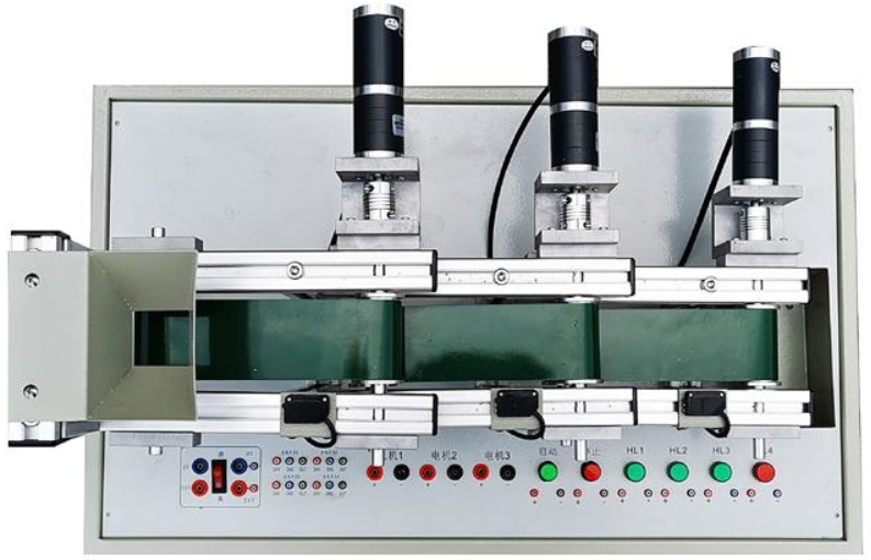 LGPFZC-1自動送料裝車實(shí)訓(xùn)模型系統(tǒng)是用于物料輸送的流水線設(shè)備,主要是用于煤粉、細(xì)砂等材料的運(yùn)輸。本實(shí)訓(xùn)模型通過三臺電機(jī),三個傳送帶、料斗、小車模擬車斗)的配合,有效地完成物料的運(yùn)送、故障停止等功能。三臺電機(jī)控制三節(jié)傳送帶運(yùn)輸,電磁鐵YA控制料斗下料與否,傳感器ac檢2測運(yùn)料小車空滿;K1、K2、K3分別為電機(jī)M1,M2、M3故障設(shè)置開關(guān)。
